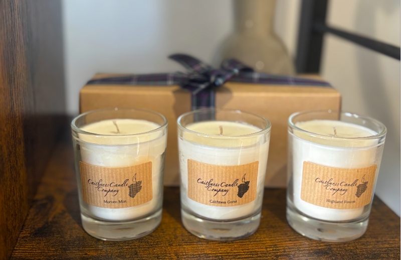 Far North Candle Gift Set – Handcrafted in Caithness, this luxurious set features three exquisite 9cl candles with unique fragrances: Caithness Gorse, Highland Fusion, and Morven Mist. Each candle offers 15 hours of burn time, bringing the wild beauty of the Scottish Highlands into your home. Perfect for gifting or treating yourself to a slice of the Far North!